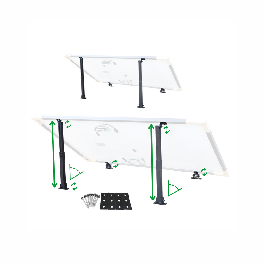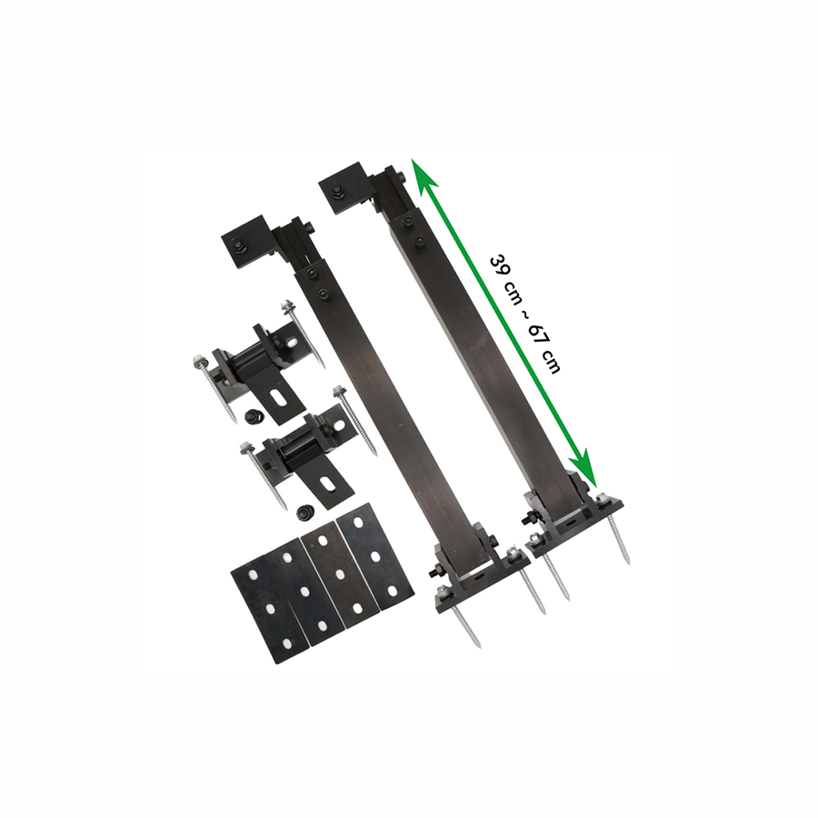 The elevation allows for easy installation of solar modules on flat roofs, with small angles at the front and extendable supports at the rear for optimal alignment. In addition, the bracket is also designed for wall mounting, which allows the solar modules to be easily attached to walls.